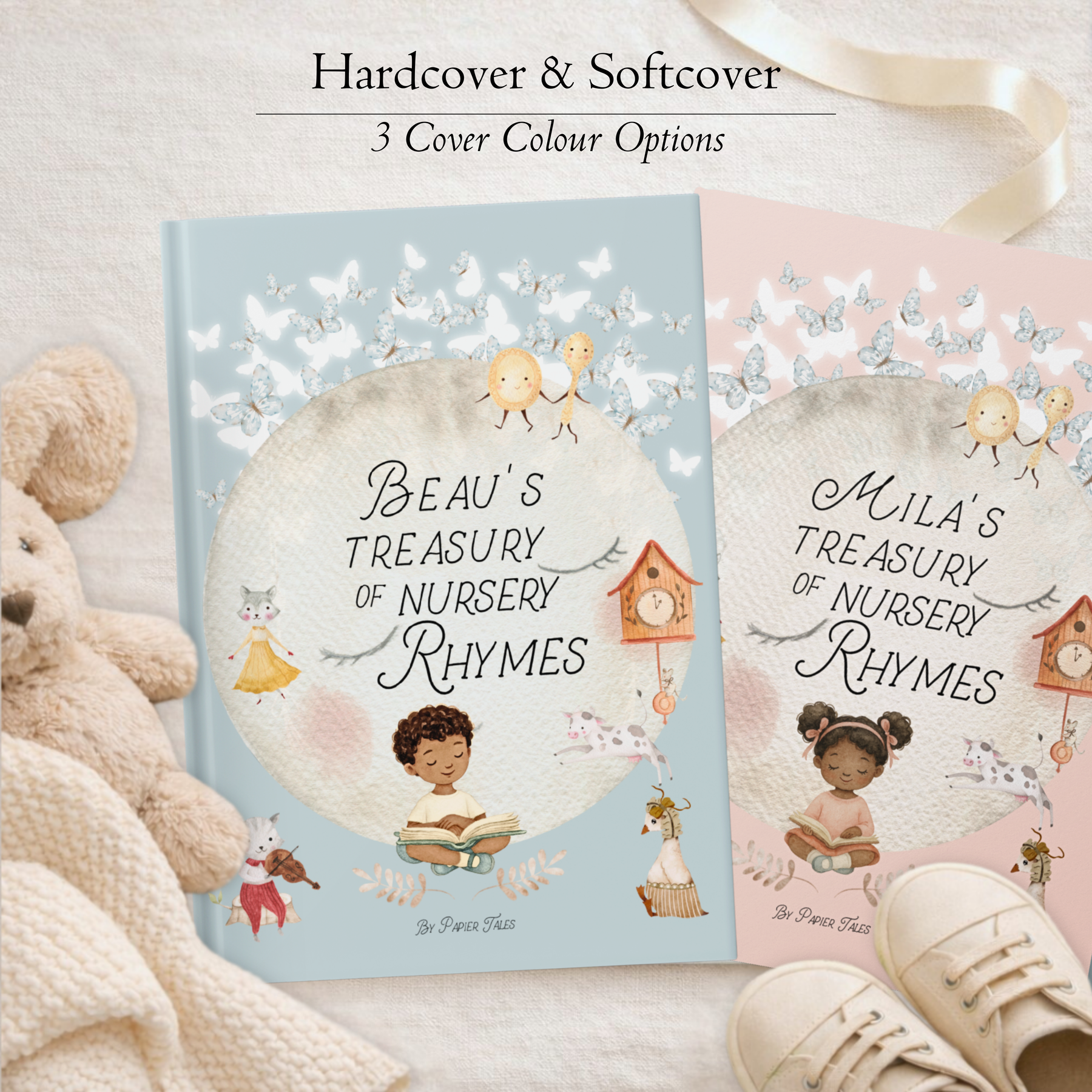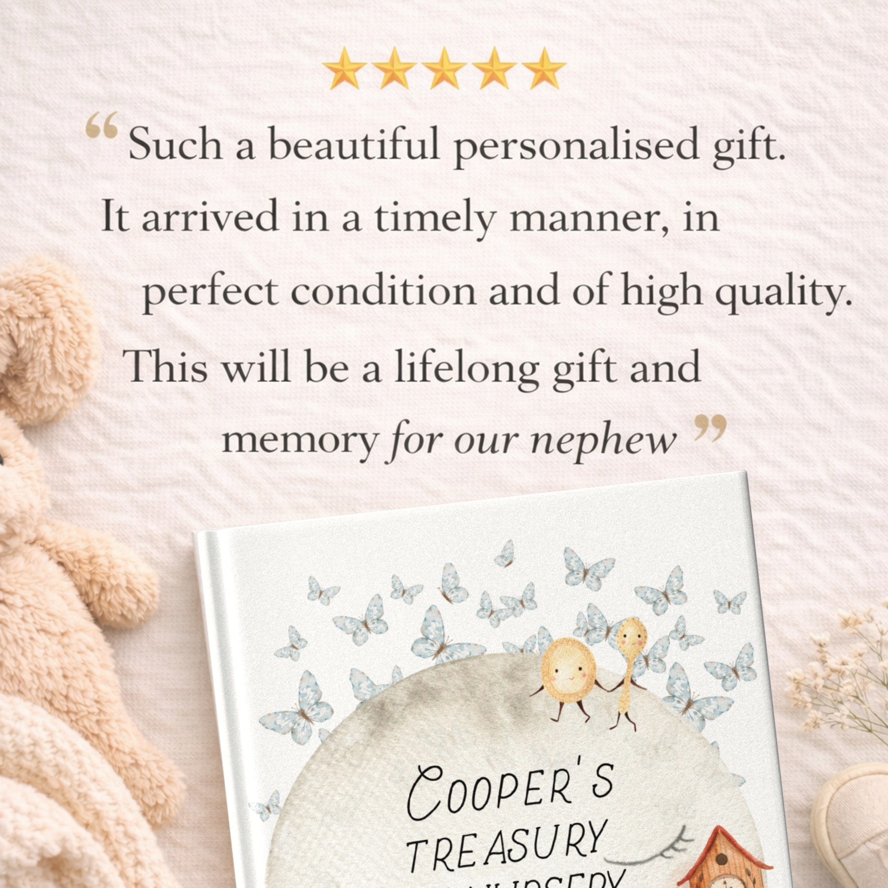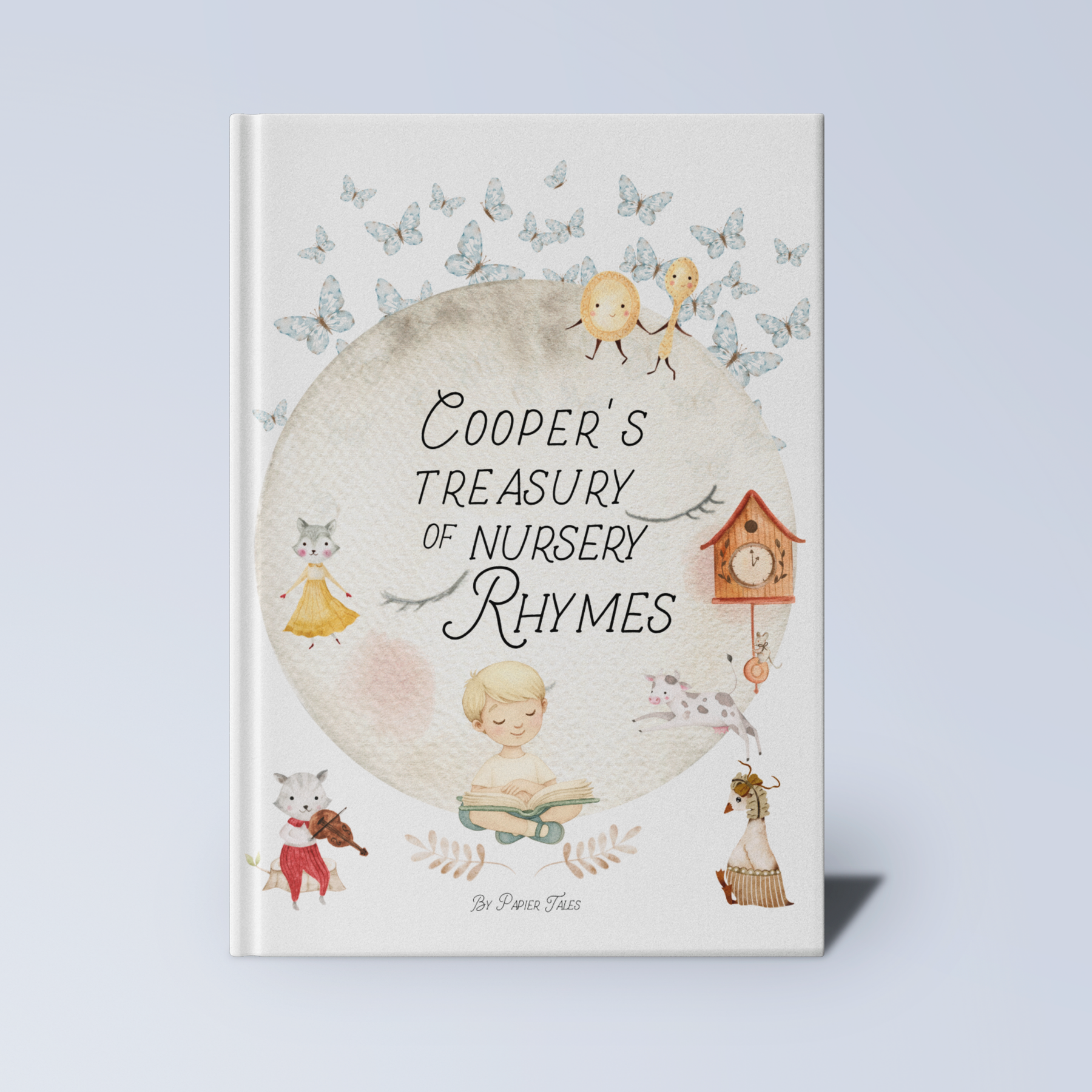 Treasury of Nursery Rhymes is a beautifully illustrated, personalised children’s book designed to celebrate the magic of childhood. Featuring classic nursery rhymes and personalised details, it’s a timeless keepsake created especially for your little one.