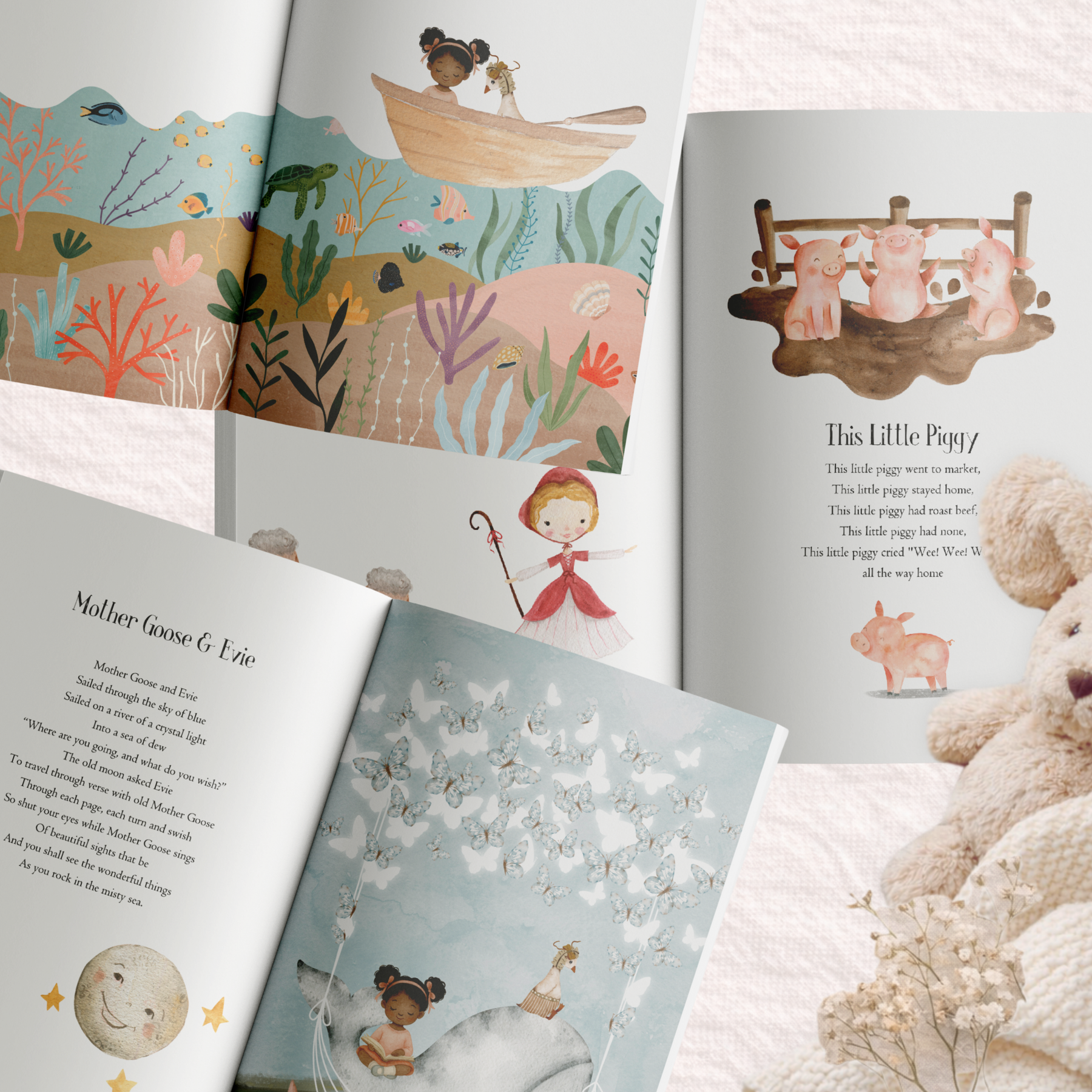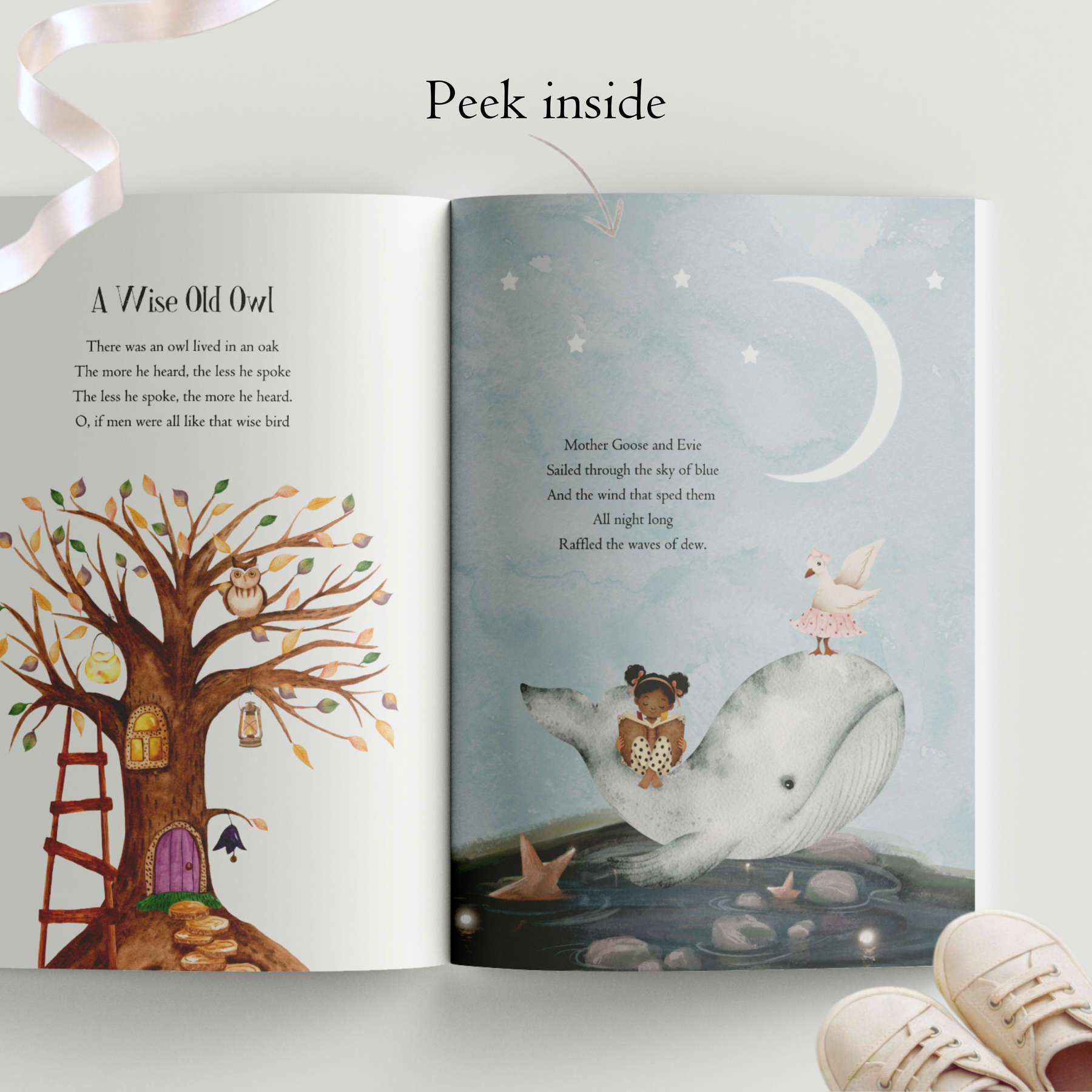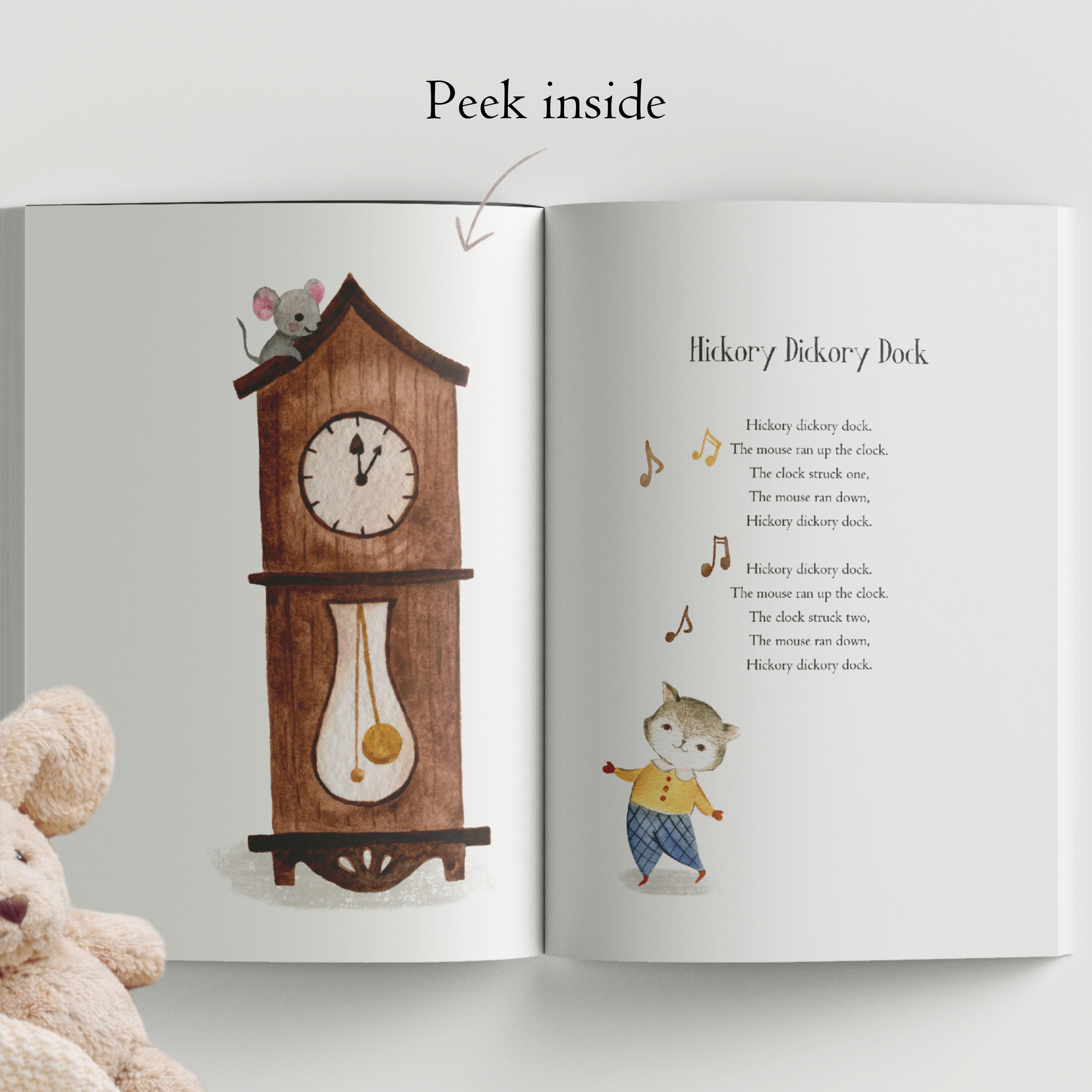 Treasury of Nursery Rhymes is a beautifully illustrated, personalised children’s book designed to celebrate the magic of childhood. Featuring classic nursery rhymes and personalised details, it’s a timeless keepsake created especially for your little one.